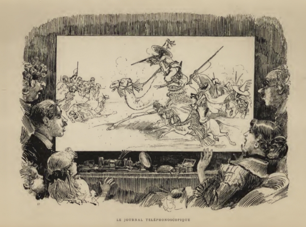 А.Робида «XX век» (1883). Просмотр новостей в телефоноскопической газете.