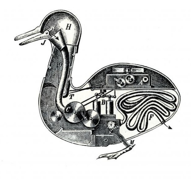 Утка Вокансона. Клевать зернышки и гадить - еще не значит быть живой. Логически мыслить - еще не значит обладать сознанием.